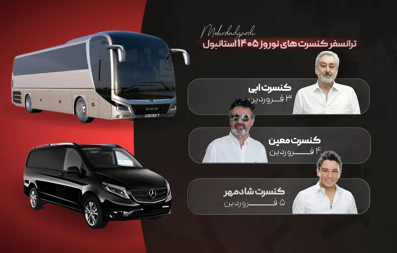 لیست قیمت ترانسفر عمومی رفت و برگشت کنسرت های نوروز 1405 استانبول به ازای هر نفر(صندلی)